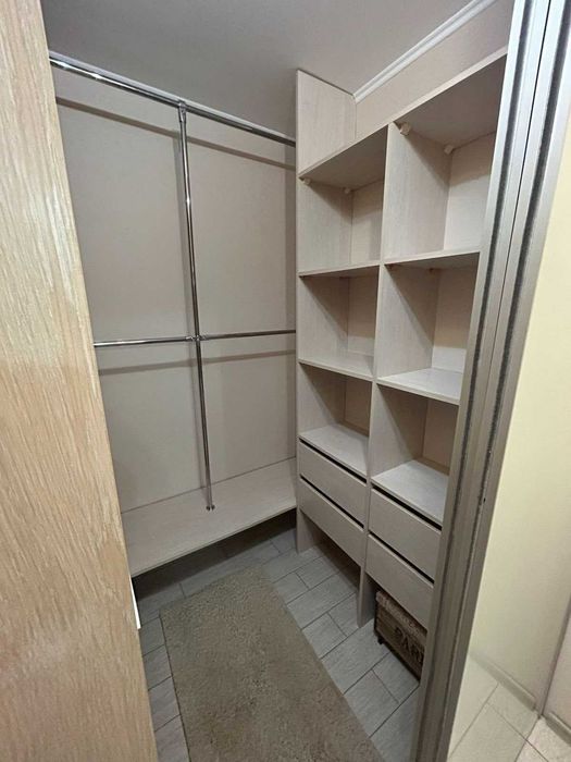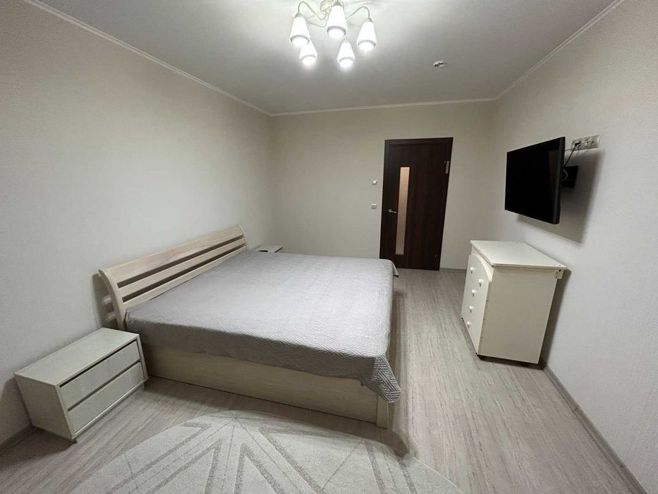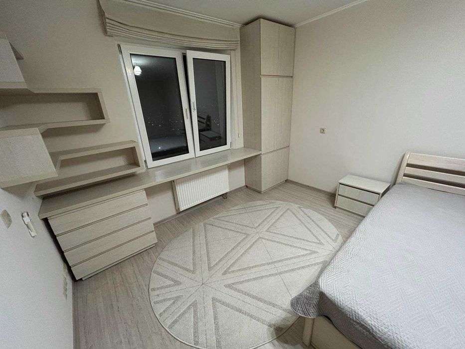 Передбачено багато місця для зберігання: великий гардероб, а також шафа і комод у коридорі. Кухня облаштована розкладним диваном і зручним столом. Є лоджія з батареєю та панорамним видом на Київ. Встановлений лічильник на опалення, середні комунальні витрати за рік — близько 2050 грн/місяць (для 2 дорослих + дитина). У будинку є 2 пасажирські та 1 вантажний ліфт, у дворі — дитячий майданчик. Зручне розташування: до супермаркету Novus — 7 хвилин пішки, до ТЦ Retroville — 15 хвилин.