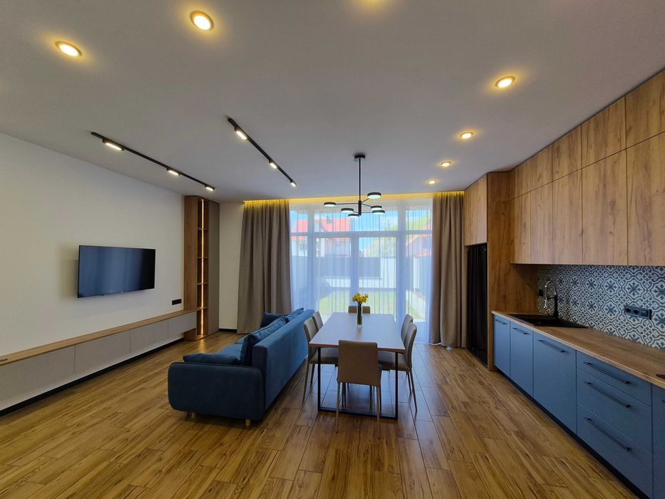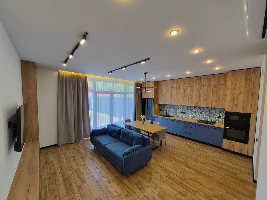 Просторий 2-ох поверховий будинок має власну прибудинкову територію, укомплектований сучасними меблями та новою побутовою технікою. Світлий інтер'єр, панорамні вікна, багато місць для зберігання.