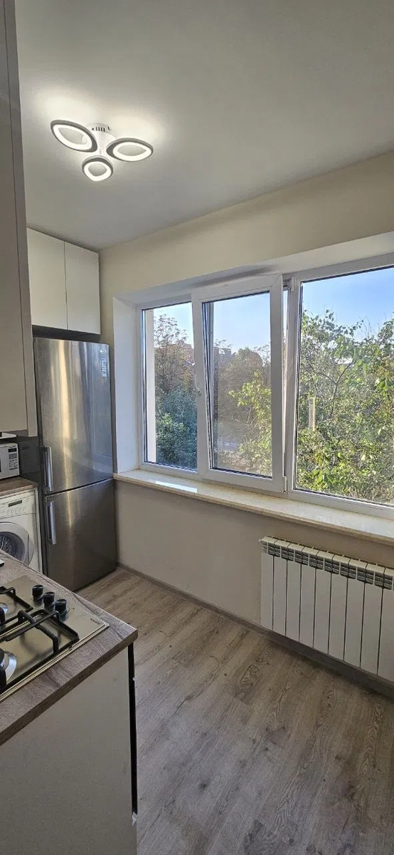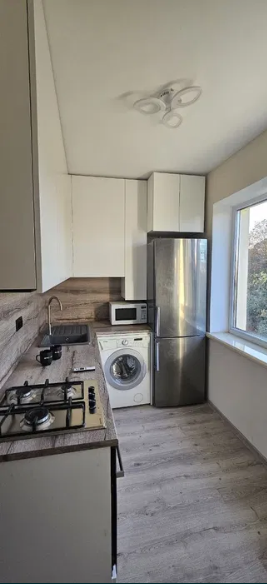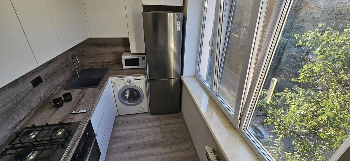1к метро Голосіївська; Здається затишна квартира — 5хв пішки від метро Голосіївська! Однокімнатна квартира зі спальною зоною і вітальнею, великими панорамними вікнами та балконом. Світла і простора кухня з вбудованою технікою. Суміжний санвузол з сучасним душем. Повністю обладнана всією необхідною технікою: холодильник, газова плита, електродуховка, мікрохвильова та пральна машина. Є окрема гардеробна. Меблі частково надані (ліжко з ортопедичним матросом, шафа в коридорі, стіл кухонний). Квартира готова до перегляду з 6-го вересня.