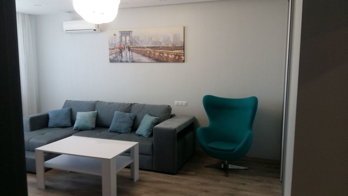 Сдам 1 комнатную стильную квартиру в ЖК «Срибна Вежа» Квартира с качественным дизайнерским ремонтом площадью 50/22/14 м2 расположена на 13 этаже 25 этажного дома бизнесс класса, полностью укомплектована мебелью и техникой (большой качественный угловой диван, 2 шкафа-купе, прихожая, холодильник, стиральная машина, телевизор, кондиционер, бойлер, вытяжки, посудомоечная машина, варочная поверхность, духовой шкаф, интернет, роутер), вся мебель и техника новые, установлены счетчики воды, тепла, электроэнергии(трехзонный) Закрытая охраняемая территория с видеонаблюдением, есть подземный паркинг и гостевая парковка Развита инфраструктура, удобная транспортная развязка, парк Котляревского, метро 10 мин.пешком