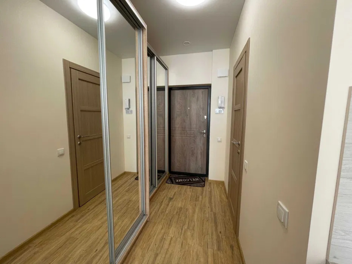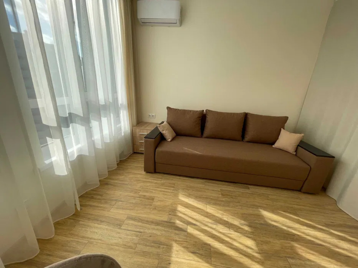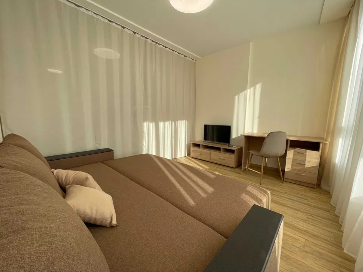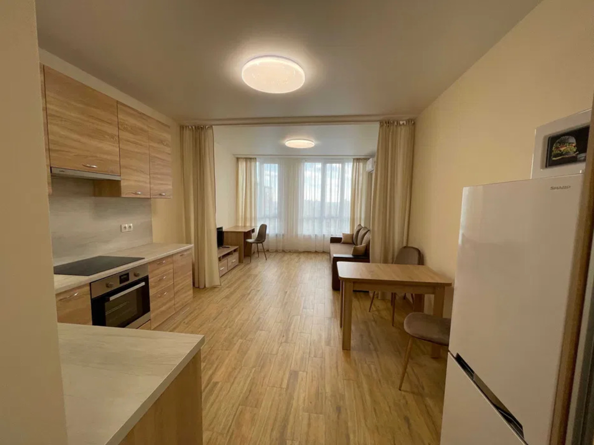 1к в ЖК Каховський; Видова смарт-квартира в ЖК Каховський, сонячна, світла, тепла. В ЖК встановлено генератор. Метро Лівобережна – 15 хвилин пішки. Зупинка громадського транспорту біля будинку. Євроремонт. Вбудована кухня, вся побутова техніка, холодильник, варильна поверхня, духовка, витяжка, мікрохвильова піч, обідній та компютерний стіл, кондиціонер, смарт TV, шафа купе, пральна машина, бойлер. Низькі комунальні – лічильники на опалення, ГВ, ХВ. У будинку 3 ліфти (вантажний та 2 пасажирських) Квартира здається для 1-2 осіб. Без тварин.