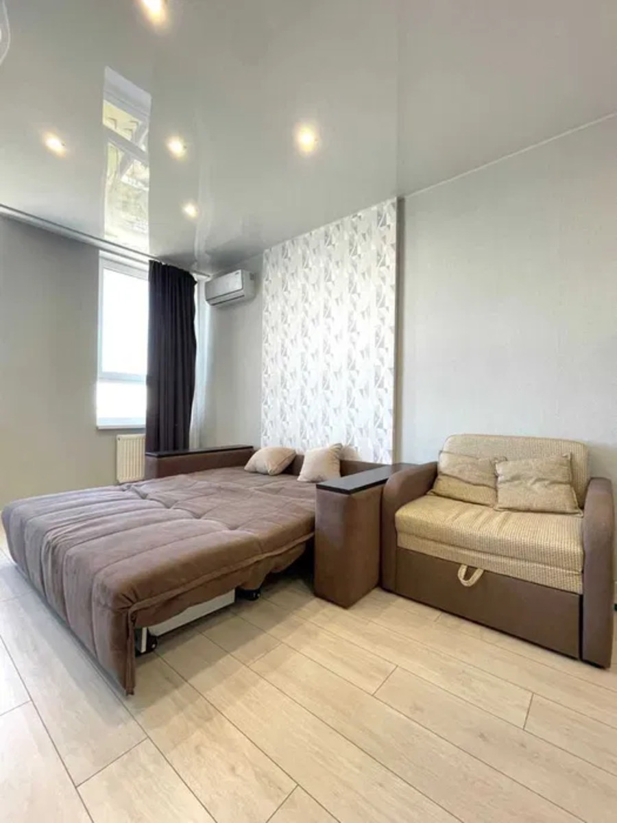 1к метро Бориспільська; Здається стильна квартира, ремонт із використанням виключно якісних матеріалів. Всі необхідні меблі та техніка в наявності. Планування: - студія, зонована на кухонну та житлову зони - санвузол - суміщений (душова кабіна + туалет). Вихід вікон – на парк та ліс. Світла, тепла сторона (північний схід). Опалення індивідуальне - електричний котел. Сучасне парадне, 2 швидкісні ліфти, відеоспостереження та охорона. На стилобаті закритий від сторонніх внутрішній двір із дитячим та спортивним майданчиком. Поруч доглянутий парк Юридичної Академії, великий доглянутий Парк Партизанської Слави із озерами та зонами відпочинку. На території комплексу є гостьовий паркінг, спортивний стадіон, планується відкриття 3-поверхового торгового центру. У пішій доступності супермаркети (Сільпо, АТБ, Бадьорий, Коло) та магазини, ТЦ, кафе та ресторани, ринок та багато інших блага цивілізації. Зручна транспортна та автомобільна розвязка - поруч знаходяться основні дорожні артерії Дарницького району.