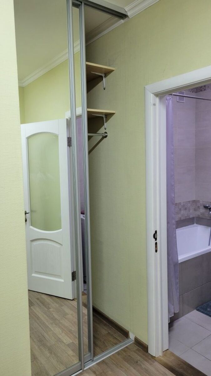 1к метро Вирлиця; Здається квартира в елітному комплексі від Ковальської 2016р. Світла затишна квартира з чудовим ремонтом, з продуманими рішеннями в організації простору. Кухня без відокремлення від кімнати дверима. З кухні є вихід на засклену лоджію, гардеробна. Квартира повністю мебльована і технічно оснащена: є кондиціонер, варильна індукційні поверхня, духова шафа, бойлер на 50л, пральна машина-автомат, холодильник, телевізор, утюг, wi fi. Встановлені лічильники на воду і тепло, гаряча вода централізована і через бойлер. Комплекс розташований неподалік ст.м.Вирлиця, ( 5 хв. пішки)має закриту територію під охороною, є консьєрж, відкрита стоянка для авто біля будинку і підземний паркінг.