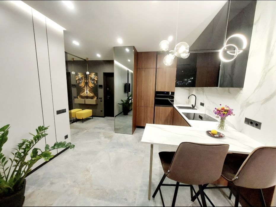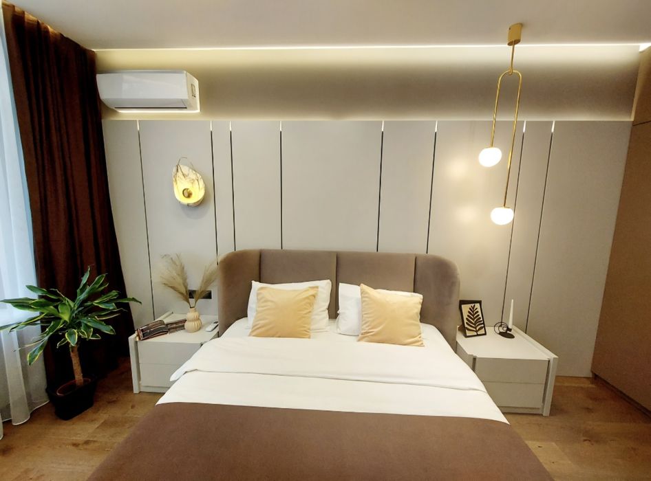 - зручності - по всій квартирі встановлено теплу підлогу, 2 кондиціонери на тепло/холод, прально-сушильна машинка, посудомийна машинка, духова шафа з функцією микрохвильовки, багато різного світла та дзеркал, ліжко з ортопедичним матрацом;