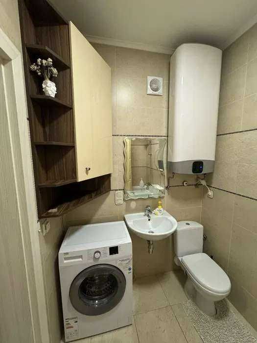 Ванна кімната — умивальник, унітаз, ванна, бойлер, пральна машина, шафа для зберігання речей, підігрів підлоги.