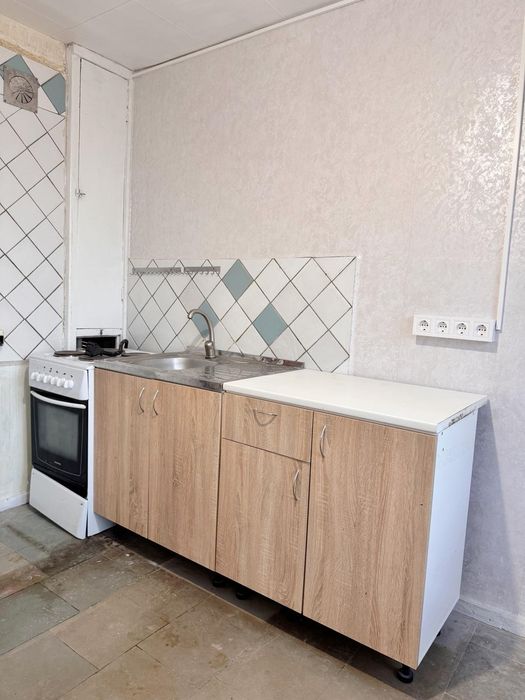 Из мебели есть кухонный гарнитур и печка.