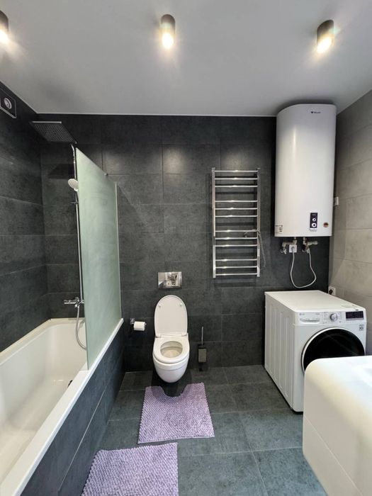 У ванній кімнаті є сучасна пральна машина з функцією сушки, бойлер для підігріву води та ванна. Також у квартирі передбачена велика гардеробна кімната для зберігання одягу та речей — простора та зручна для організації зберігання. Крім того, при вході розташована велика шафа-купе з дзеркалом, що додає зручності у повсякденному житті. У квартирі також є робот-пилосос із функцією миття підлоги, що значно спрощує прибирання, а тепла підлога забезпечує додатковий комфорт у холодну пору року. Додатково встановлена охоронна система з можливістю підключення до смартфону та за потреби до місцевих охоронних компаній (оплата окремо).