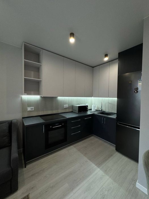 Кухня повністю обладнана всією необхідною технікою: духова шафа, індукційна плита, великий холодильник і мікрохвильова піч — усе для зручного щоденного користування. Також на кухні є посудомийна машина, що значно спрощує побут.