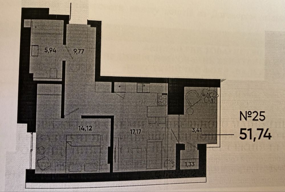 Загальна площа квартири 51,74 м2