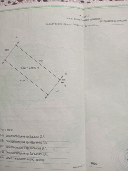 Земельна ділянка; Продаю земельну ділянку під забудову. Асфальтований доїзд до ділянки.; кадастровий номер: 6822484200030040066