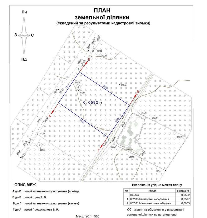 Площа 0, 0582 га (5,82 сотки) Землі сільськогосподарського призначення