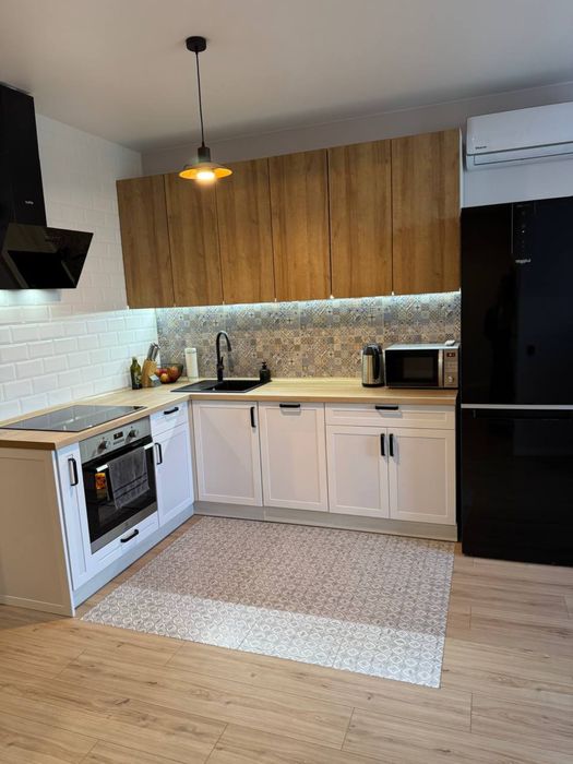 З техніки: 2 кондиціонера, бойлер, варочна поверхня, духова шафа, холодильник, посудомийна, пральна- сушильна машинка, телевізор.