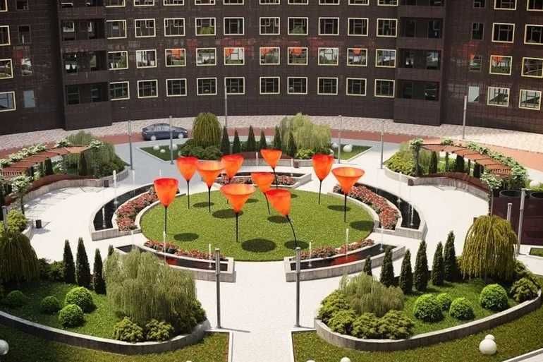 Особенность этого объекта в том, что внутри создана концепция «город в городе». Жителям практически не нужно выходить за пределы территории для решения бытовых вопросов: