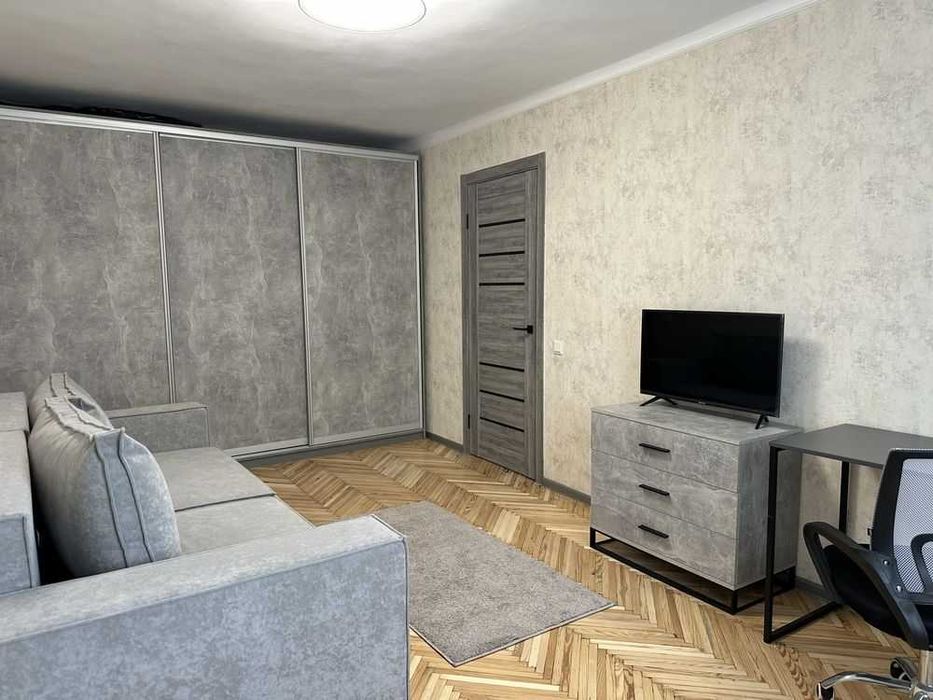 Кімната: 2-спальний диван, шафа-купе, робочий стіл+крісло, комод, смарт-ТВ.