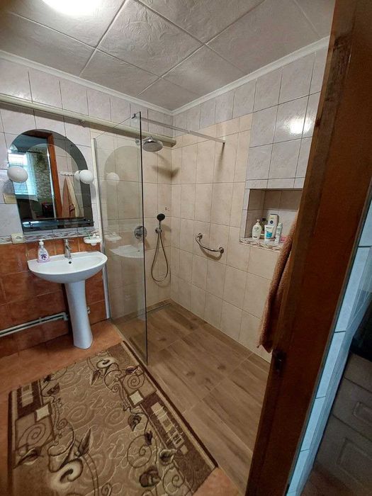 Загальна площа будинку 94,1 кв.м. з них житлова 57,4 кв.м.. Усього 5 кімнат, кухня, туалет з душовою зоною та коридор з котельнею. Опалення індивідуальне газове. Матеріал шлакобетон, рік побудови 1980. Будинок утеплений пінопластом та оздоблено фасад декоративною штукатуркою типу барашек, міжкімнатні двері - дубові. Всі вікна металопластикові.