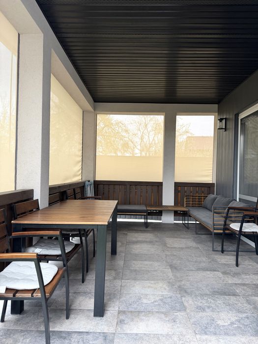 Будинок площею 118 м², має 3 окремі спальні, кухню-студію, 2 санвузли. Побудований з термоблоку (взимку тримає тепло, влітку прохолоду).