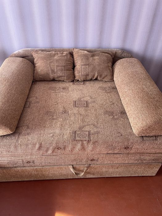 В кімнаті є стінка, стіл, ліжко, розкладний диван.
