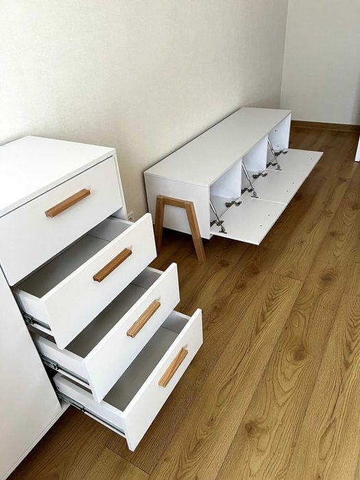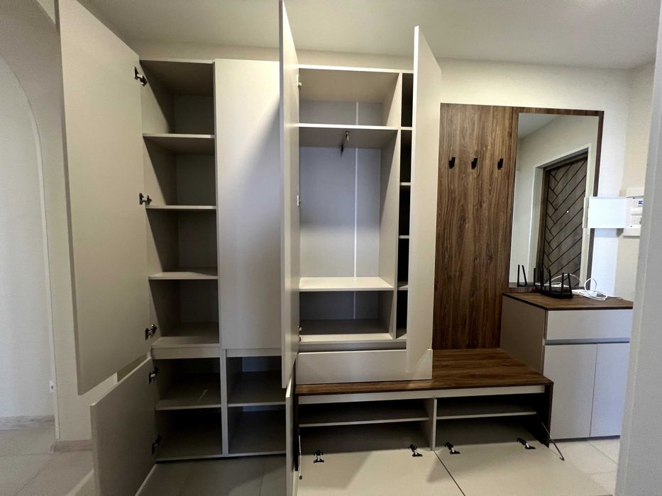 - в коридорі знаходиться велика шафа під замовлення та комод для взуття, дзеркало