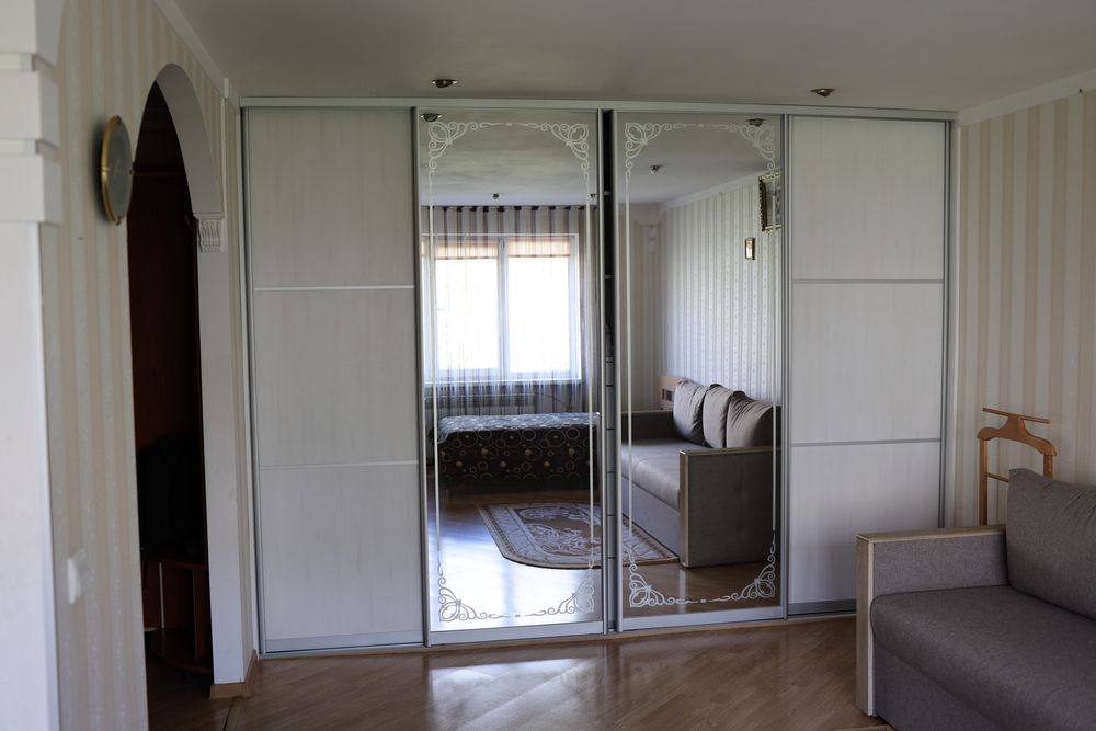 Ліжко односпальне та диван розкладний двохмісний. Шафа купе велика вмістка. Окрема шафа для побутового обладнання. У ванні душова кабіна, пральна машина. Шафа для зовнішнього одягу в коридорі.