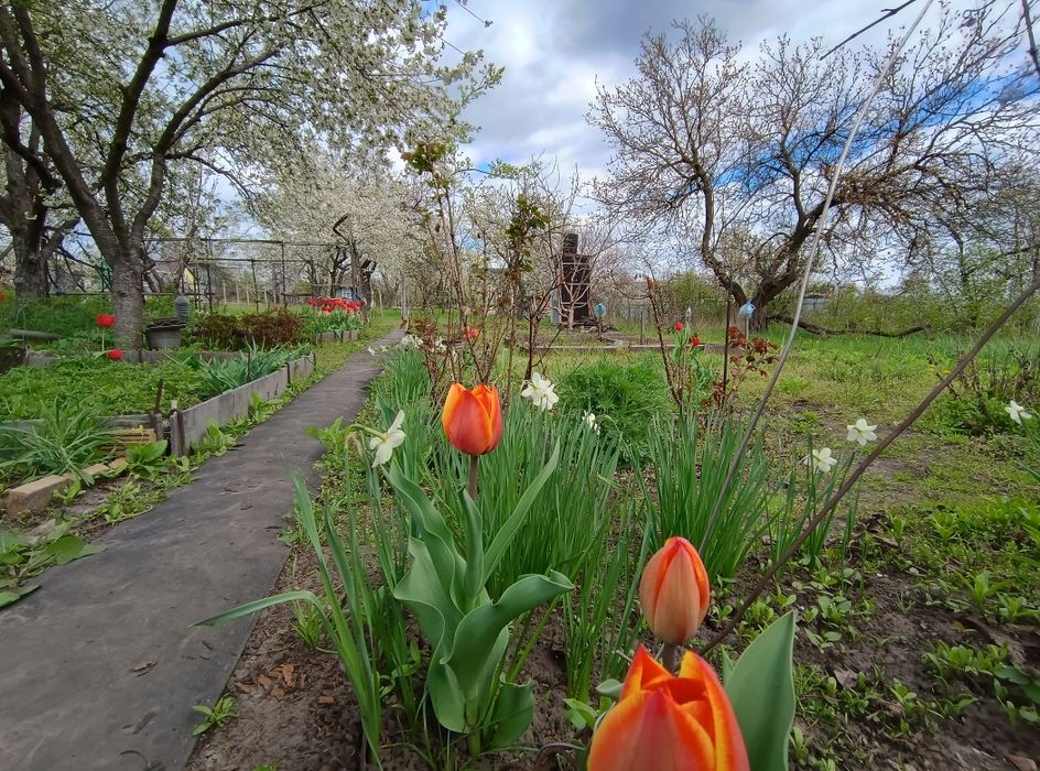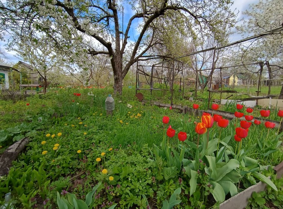 - фруктовые деревья, малина, смородина, виноград, розы, тюльпаны.