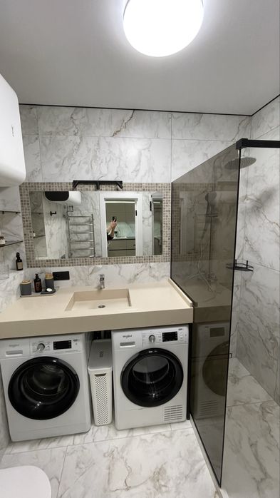 вбудована техніка: посудомийна машина, пральна та сушильна машини, кондиціонер, телевізор, бойлер, тепла підлога, відеодомофон.