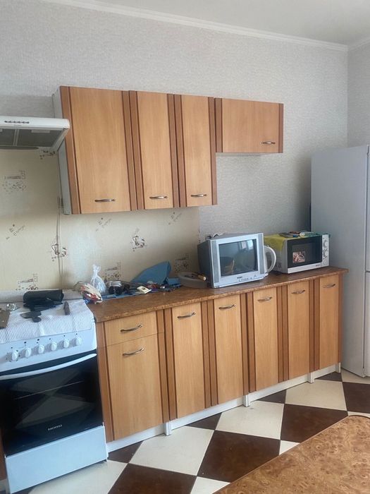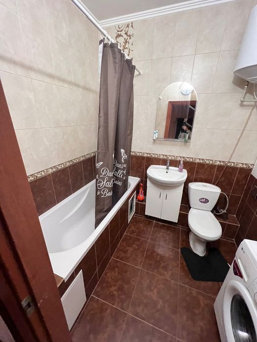 Меблі —2 дивана ,шафа і передпокій,кухонний стіл і мягкий куток ,пральна машинка,бойлер,холодильник,телевізор,електро—плита,мікрохвильова піч.Без тваринок .Метро Видубичі та Деміївська 10 хвилин на авто. Поруч АТБ та Флора . 15 000грн +комунальні платежі