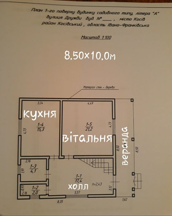 Продам дерев'яний котедж, 160 м кв.; Продам дерев'яний котедж розмір 8.50м×10м(3 кімнати і кухня).