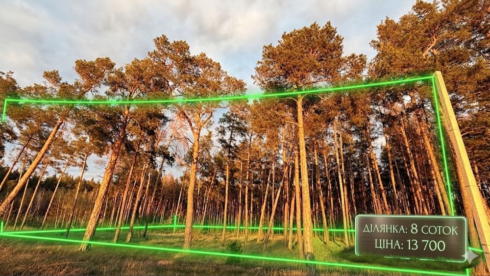 Рівні 8 соток під будівництво, 16 струнких сосен — природна краса без зайвого клопоту при плануванні. Ділянка одразу виходить у густий грибний ліс — ваш власний куточок для тихого відпочинку і збору боровиків вже з першого сезону, безкінечний запас сухостою для вашого тепла!