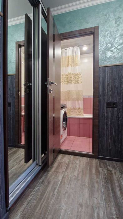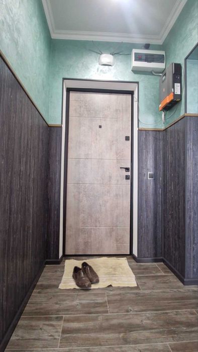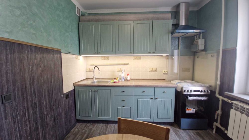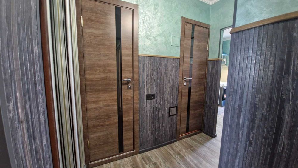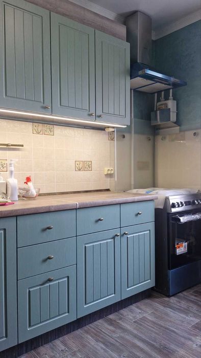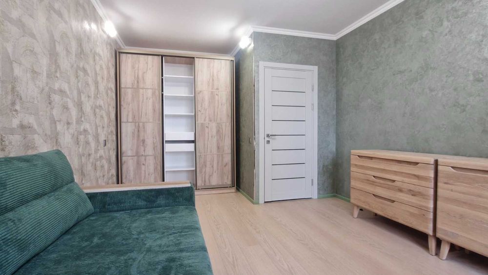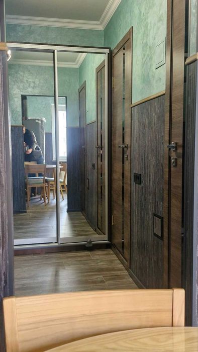 Меблі з натуральної деревини (комоди - вибілений дуб, стіл та стільці - ясень), 2 шафи. Встановлено та підєднано обдладнання аварійного живлення (24В, 3000 Вт), встановлено WI-FI роутер. Меблі в усіх кімнатах нові (не були у користуванні). Плінтус - дюрополімер, факбований акрилом. Підлога коридор кухня - керамограніт, кімната ламінат 33 класу. Фасади коридора та кухні оздоблені якісними, панелями з бамбуку.