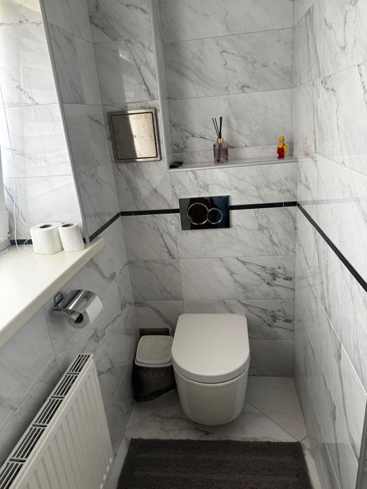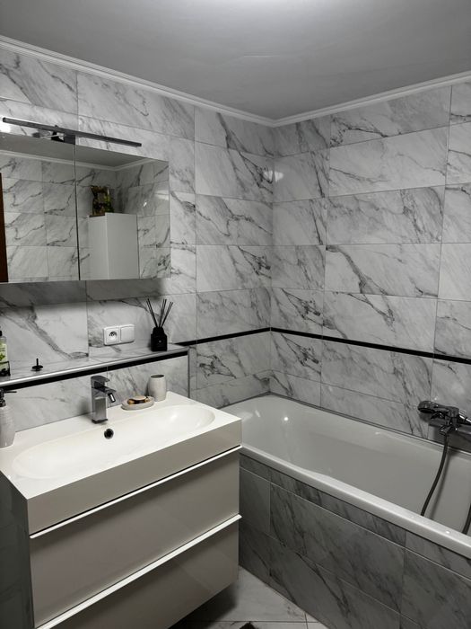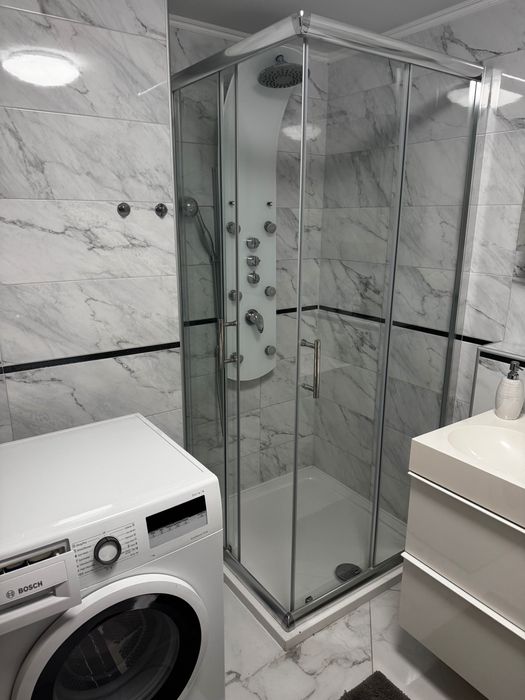Ванна кімната: ванна, душова кабінка, пральна та сушильна машина, туалет окремо.