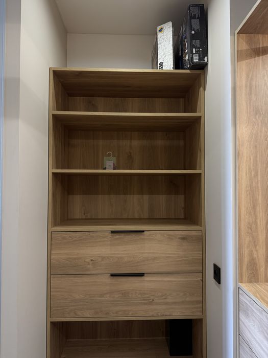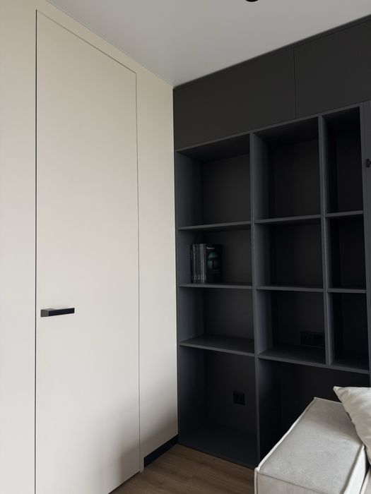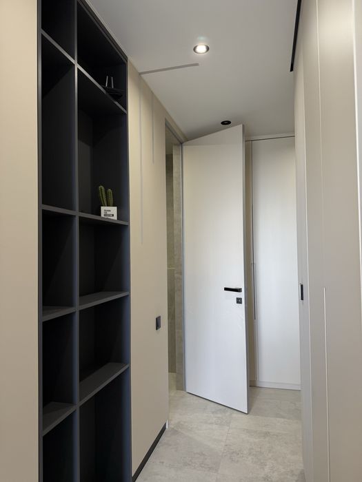 Простора, світла і дуже продумана - за максимально функціональна. Тут кожен метр працює: приховані полички в стінах дають багато місця для зберігання.