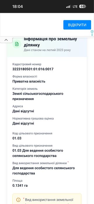 | Земельна ділянка: |