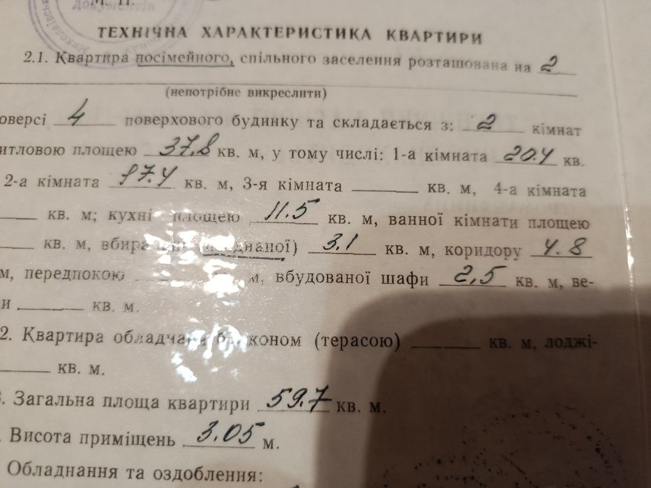 Квартира має велику кухню 11,5 м² ( можно переробити на 3 житлову кімнату-вітальню) та дві великі ОКРЕМІ кімнати 20.4 м² та 17.4 м² з високою стелею - 3.05 м. В квартирі також є комірка ( вбудована шафа) 2,5 м² та власна кладова у підвальному приміщені будинку .