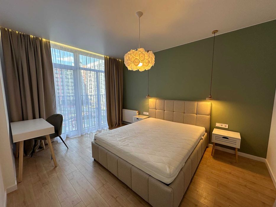 В спальні: двоспальна кровать 160/200, робоче місце, досить простора гардеробна