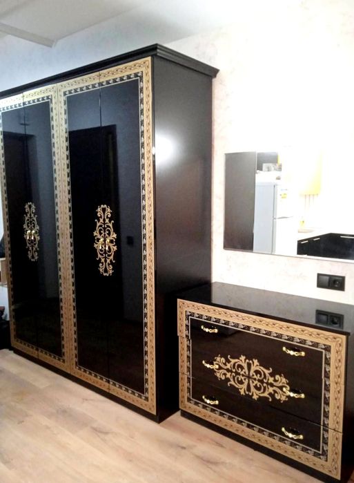 Зберігання: велика дзеркальна шафа-купе та місткий комод.