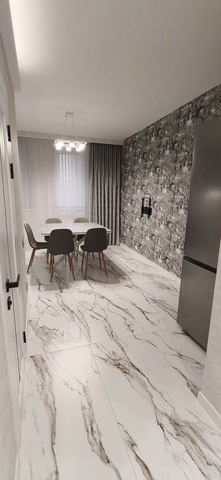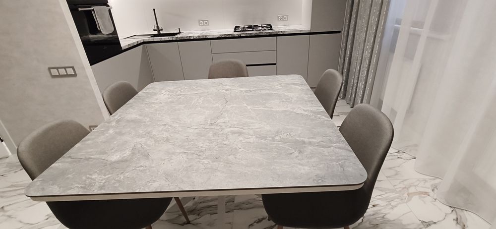 S 73 кв.м. (+9 кв.м. балкон, застеклён). Кухня 16 кв.м. с большим обеденным столом 1,2*1,2, со столешницей из натурального керамогранита, выполненный под заказ для этой кухни.