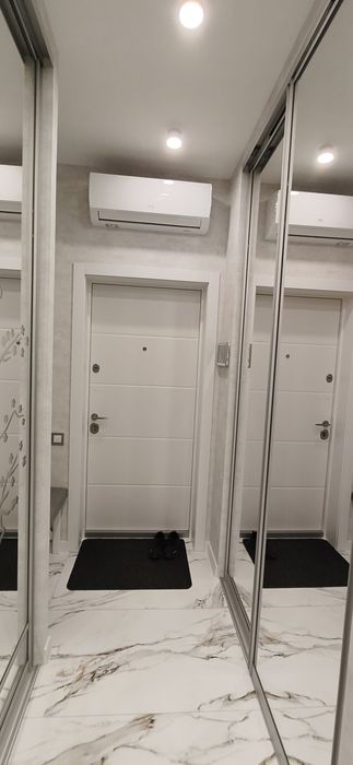 Встроенная мебель, все раздвижные системы с доводчиками, техника (кондиционер cooper&hunter, большой широкий холодильник Samsung, посудомоечная машина, стиральная машина LG). Выход на балкон из двух спален. Закрытая охраняемая территория, детские площадки, резервные баки с водой, в ЖК есть паркинги и охраняемые стоянки. В пешей доступности вся инфраструктура: сады, школы, рынки, супермаркеты, ТЦ, больницы, остановки транспорта. Квартира внутренняя, не угловая. Вид во двор.
