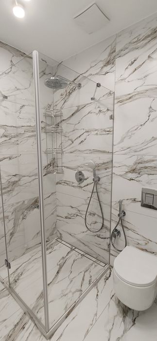 2 полноценных санузла (теплый пол в двух санузлах), сантехника Grohe, в душевой установлен термостатический кран с встроенной системой Grohe multibox. Инсталляции для подвесных унитазов Grohe Rapid с пневматическими кнопками слива (бесшумными). Безободковые унитазы с системой слива торнадо.