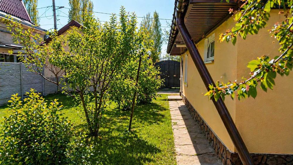 На участке расположены гараж для одного автомобиля и хозяйственные постройки. Также имеется летняя кухня — отдельное здание, которое можно использовать после ремонта или рассмотреть под снос с возможностью обустройства нового пространства. Площадь участка — 5 соток (500 м²), территория позволяет обустроить сад, зону отдыха или барбекю.