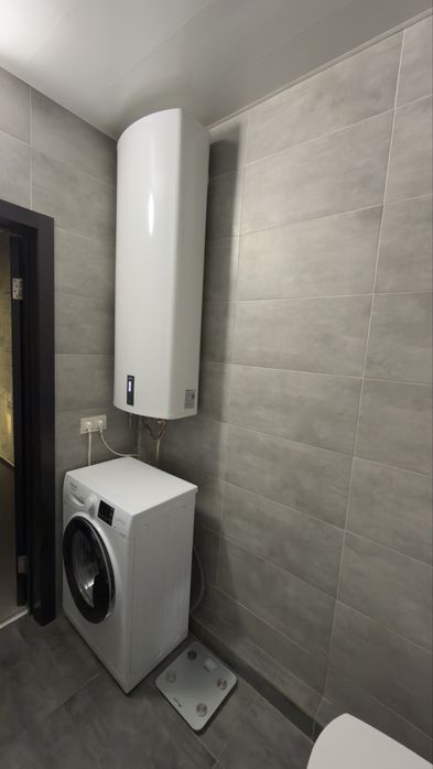 Санвузол сучасний: ванна, якісна сантехніка, пральна машина, великий бойлер.