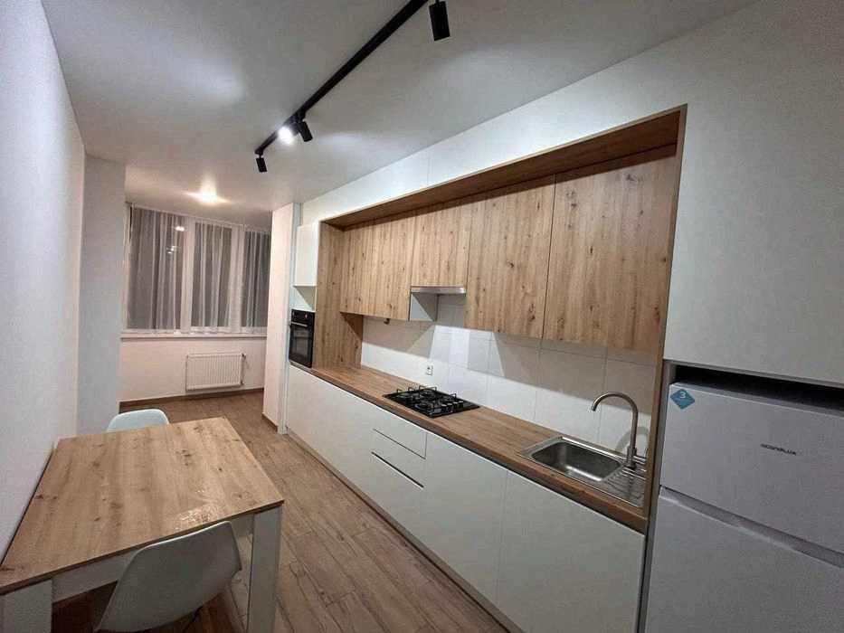 Шевченківський; Оренда однокімнатної квартири по вул Рясне; Здається в довготривалу квартира у тихому районі Рясне 2. Розміщена на 2-му поверсі цегляної новобудови з хорошою звукоізоляцією. Квартира має кухню, спальню-вітальню, санвузол, гардероб, прихожу і лоджію. Опалення і гаряча вода від двохфункційного газового котла.Квартира обладнана усіма необхідними меблями і технікою: пральна машина, варильна поверхня, духовка, холодильник, ТВ 43