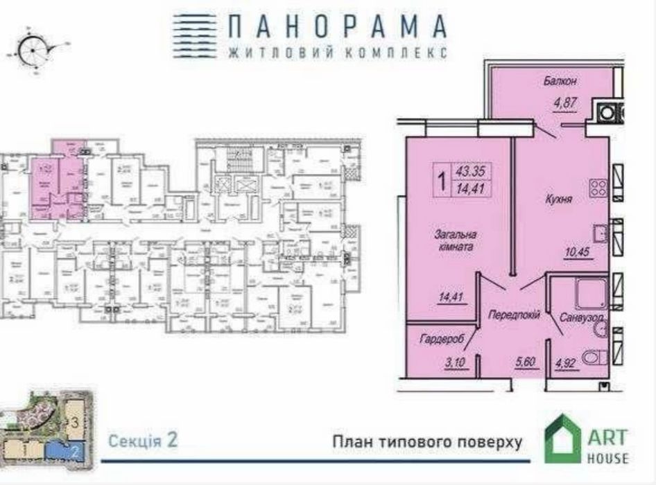 43 м2