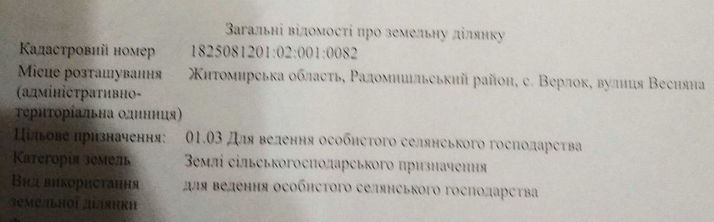 - Кадастровий номер: 1825081201:02:001:0082