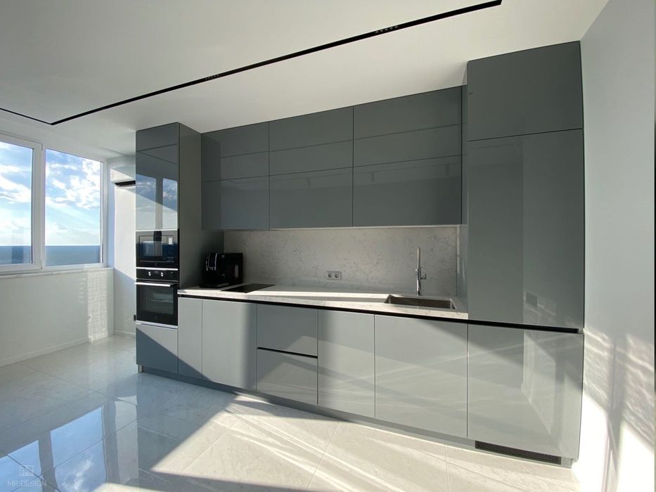 • Простора кухня з вбудованою технікою та сучасним глянцевим фасадом