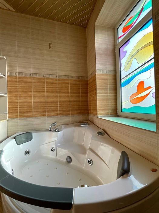 Дом общей площадью 373,9 м², участок 6 соток (госакт). Все городские коммуникации: свет, газ, вода, канализация. На участке — зимний сад, беседка, мангал, декоративный водоём, генераторная с мощным генератором и источником бесперебойного питания. Просторный гараж на два автомобиля с санузлом.