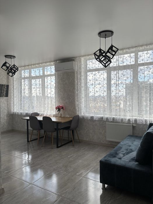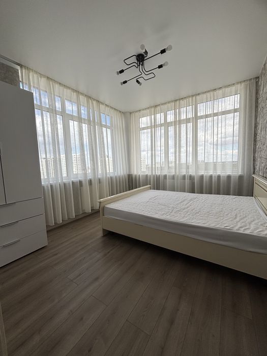 Дарницький; Оренда квартири ЖК «Теракота»; Здається квартира з великою кухнею-студією та двома окремими спальнями в ЖК «Теракота» на 19 поверсі з прекрасним видом на місто в довгострокову оренду.