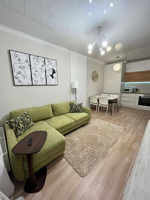 Шевченківський; Євродвушка в оренду в ЖК Файна Таун; Євродвушка в оренду в ЖК «Файна Таун» по вул. Салютна, 2. Квартира розташована на 2 поверсі, має балкон із видом на стильний заклад та фонтан.