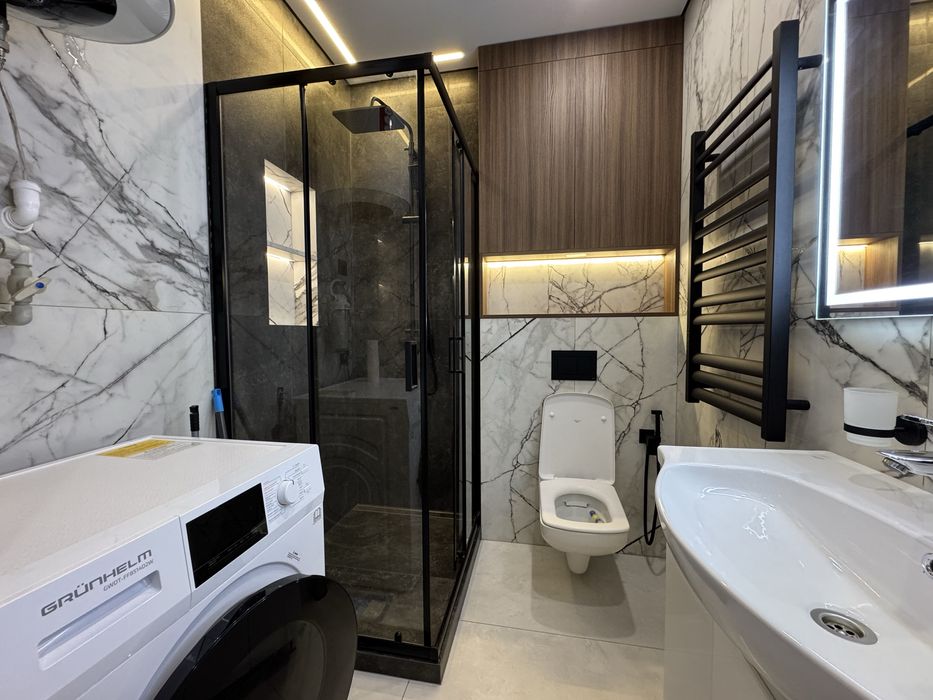 Квартира з якісним дизайнерським ремонтом, повністю готова до проживання або здачі в оренду. Продумане планування дозволяє максимально ефективно використовувати простір.