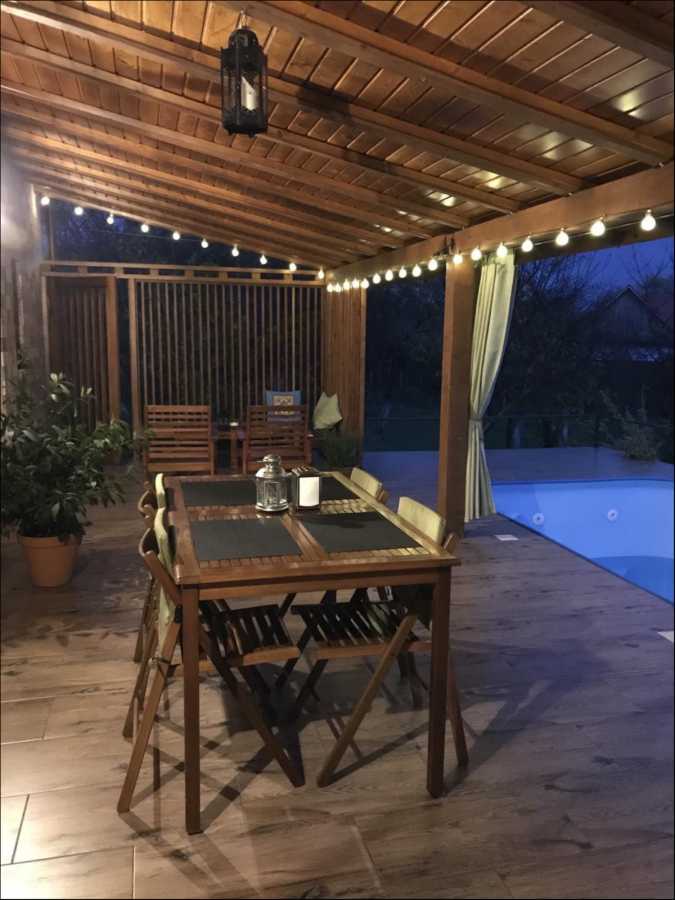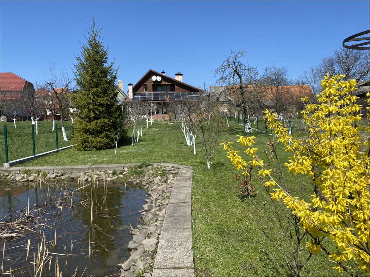 Котедж 145 кв.м. побудований з натуральних та якісних матеріалів, у стилі австрійського шале, обжитий, в ідеальному стані. На двох поверхах розташовані: 3 спальні, 2 сан.вузли, простора кухня, кабінет, камінна зала з виходом на терасу з басейном та зоною барбекю, гараж. Встановлено електростанцію на сонячних батареях 30кВт, 2 котли для опалення: електричний та твердопаливний. Водопровід та каналізація - міські, централізовані.