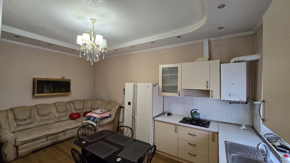 В квартире имеется большой холодильник, телевизор, стиральная машинка, электро. духовка кондиционер, роутер. Отопление и горячая вода свои , через двухконтурный газовый котёл.